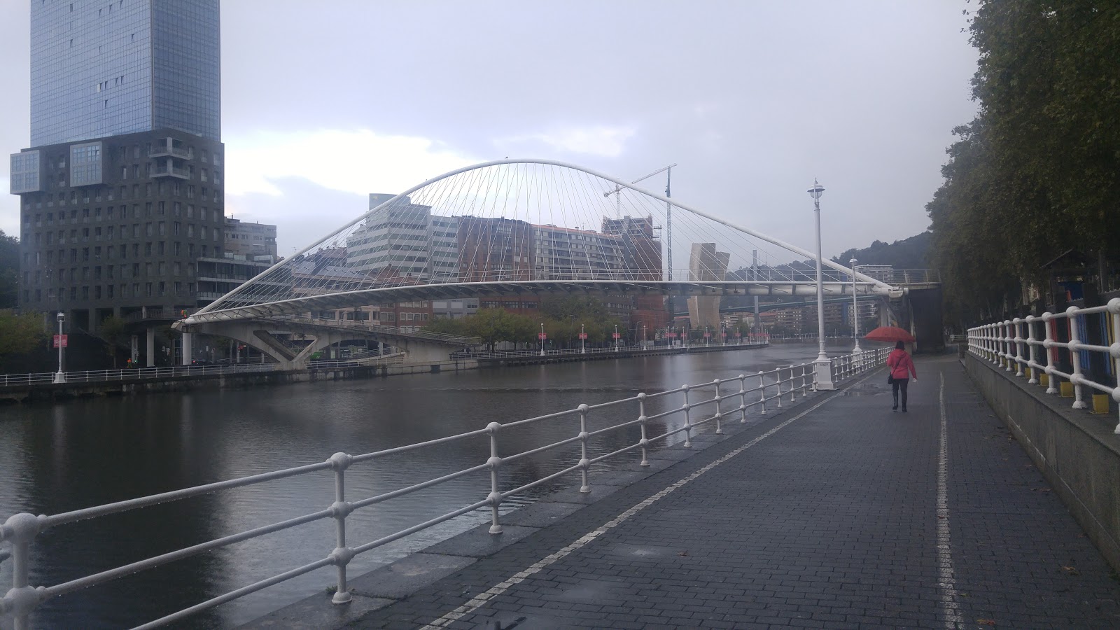 En passant par la rive sud, avec un couple de québécois, on admire les attraits de Bilbao, dont le musée de Guggenheim. Aujourd'hui on marche dans l'industriel et portuaire, triste et désolant comme paysage. Un pont original et différent ou l'on peut faire la traversé à la rive nord, par un wagon suspendu ou une passerelle dans les aires. Portugalete un coup pour nous. Quoi de mieux qu'un office du tourisme avec banc de parc pour notre dîner, accompagné d'une fanfare locale. Dans l'après-midi de la danse avec les villageois et villageoises, que de plaisirs.